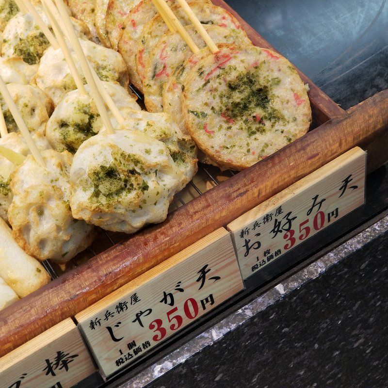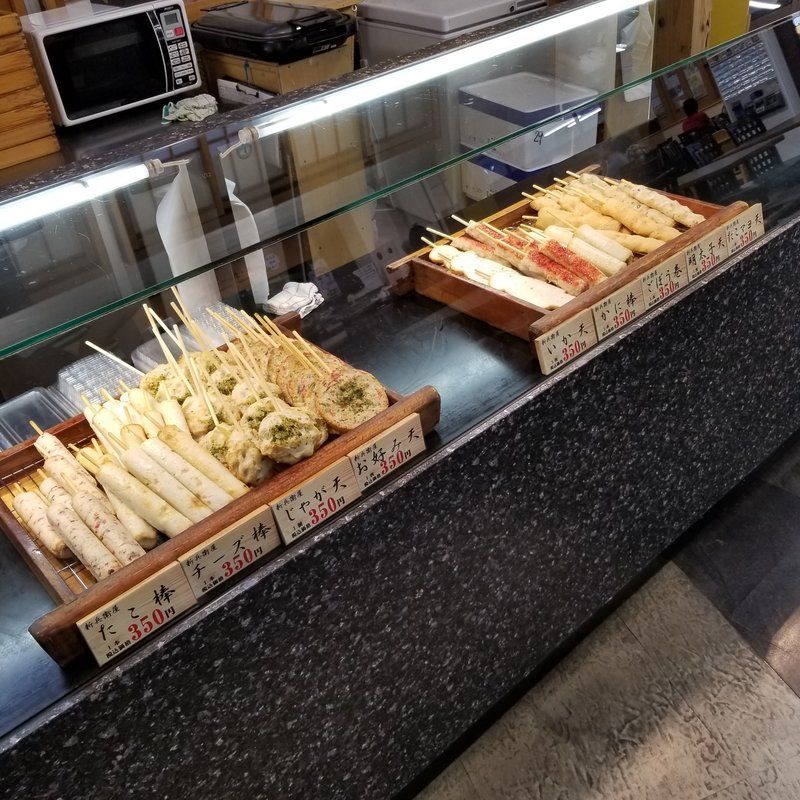 たこ棒を選んでみた。350円っていう価格設定はなかなかに強気やと思うけど、食べてみると実に良く出来てた。レンジでチンもしてくれる。やっぱり天ぷらは温かい方がいいよなあ。次に来る事があれば、かまぼこを買ってみよう~♪