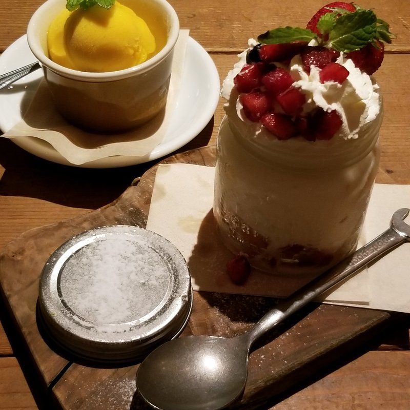 2軒目なんで、ここではデザートと珈琲を注文してみた。ホットコーヒーもいい感じ。苺ジャーケーキっていうのが実に良かった。ショートケーキをジャーに入れたカンジ。こんなスタイル、良く思いついたなあ・・・って感心したわ。値段もリーズナブルで、実にナイスなカフェやね♪