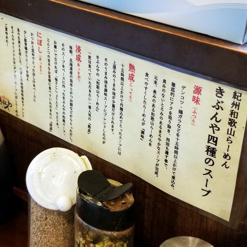 紀州和歌山ラーメン きぶんや 道頓堀店 (ラーメン / 日本橋駅、近鉄日本橋駅、長堀橋駅)
