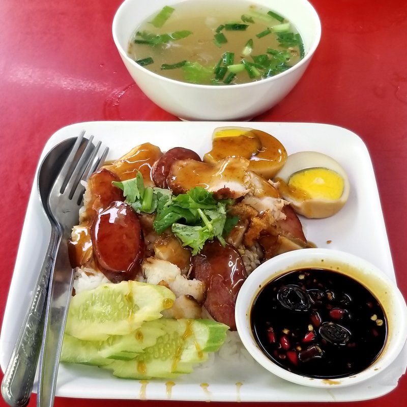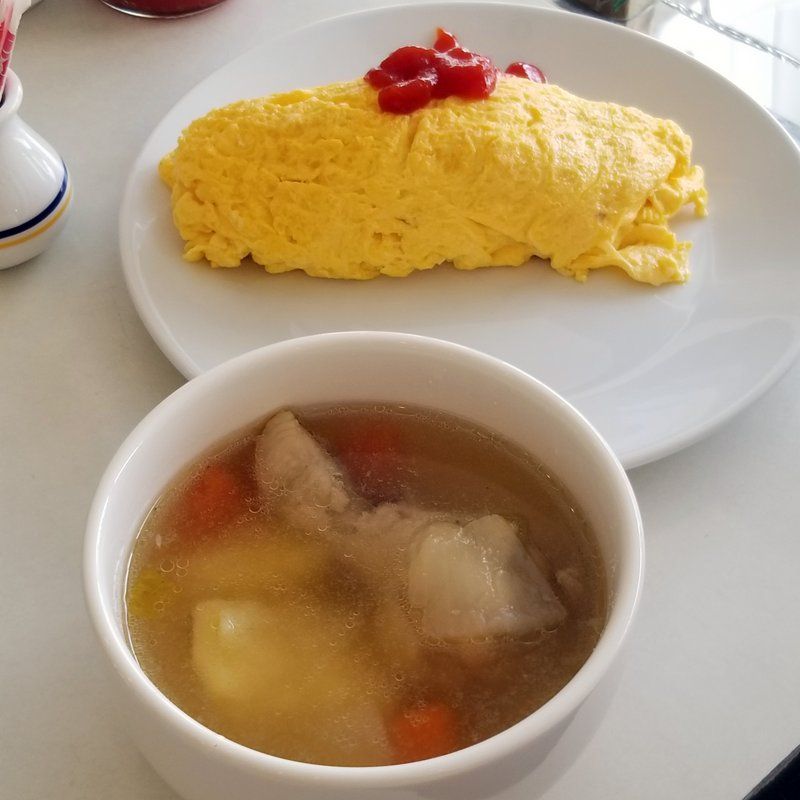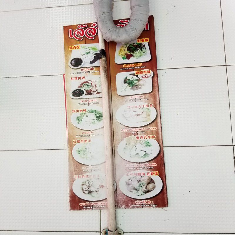 昨日は閉まってた食堂が開いてた。せっかくなんで食べていこう。カオマンガイ以外に挑戦やね。Shrimp-paste fried riceは売切れ。しゃあないから、Rice with pork soupにしてみた。値段は不明。それと瓶ビールと水。この豚飯がなかなかにいい。タレがいい。昼間からビールも最高♪ おまけに値段は110バーツ。サイコーーー!! 実に日本円で385円。