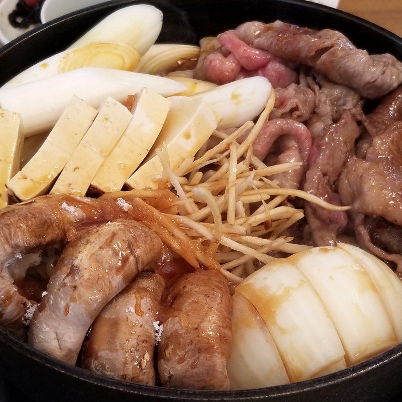 入り口が右側と左側にある!? どうもこの行列は左側みたい。右側は2階で、こっちはすき焼きを注文出来るみたい。すき焼きやったら並ばんでも良かったみたい。まあエエわ。ランチで一番いいすき焼きを頼んだ。くすんだ凄い牛肉・・・!! 焼いて食べるんじゃなくて、煮込むスタイルやね。半生で食べた。うまい・・・!! カルビ丼1,500円も注文した。凄いボリューム。これもうまい。いいお店やね~!! 一回は来てみる価値が十二分にある。肉も追加して、全部で2人で2万ぐらい。