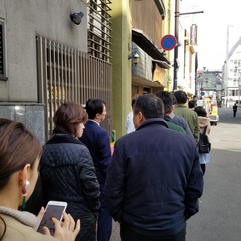 福岡中洲でランチ。1軒目に選んだお店は中洲ちんや。老舗の肉屋さんがやってるレストラン。すき焼きを食べに行ってみた。開店前から行列ができてる・・・!!