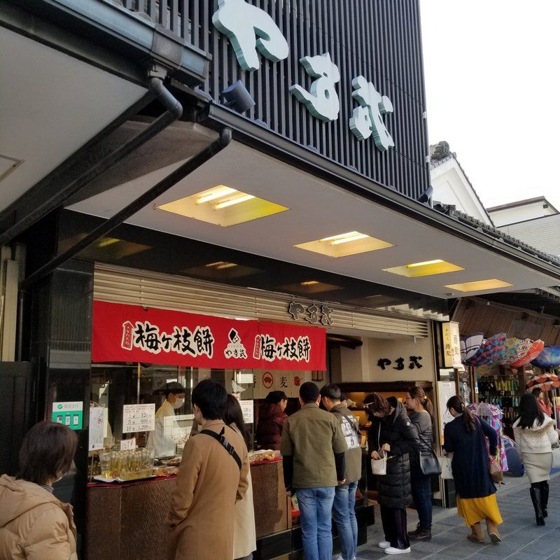 福岡中洲から電車に乗って、太宰府天満宮にお参りに来てみた。参道に色んなお店が出てる。太宰府名物の梅ケ枝餅を売ってるお店が多い。どこも焼きたて。焼くトコを見る事ができる。その中から選んだお店はやす武。