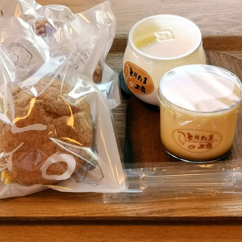 せっかくここまで来たんで、スイーツをもう一軒。平飼い卵の洋菓子専門店 とりたま工房。西新発田っていうトコにお店はあった。無料駐車場もあった。テイクアウトとイートインのスイーツショップ。