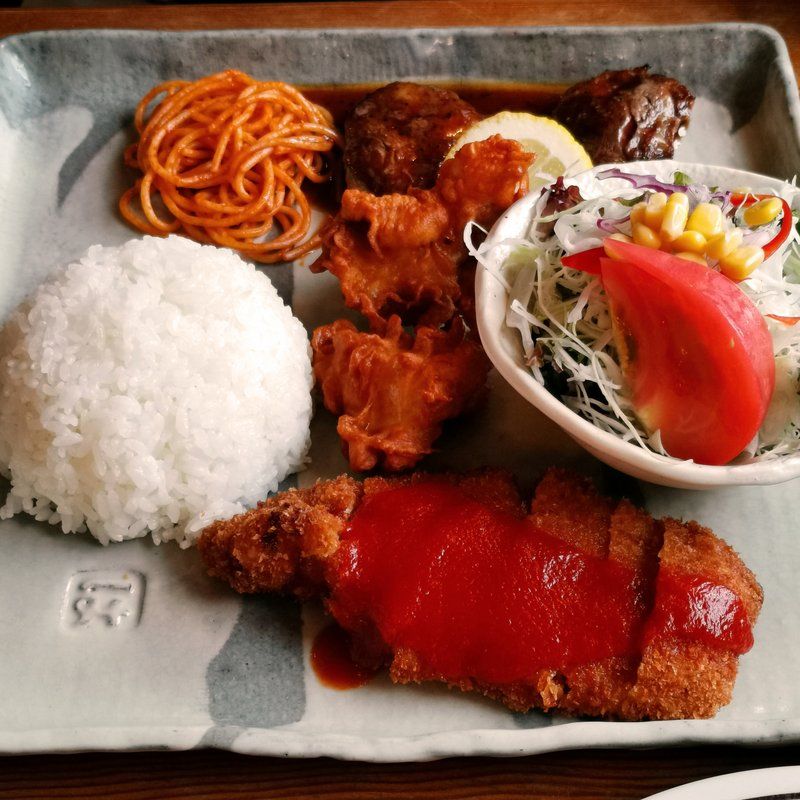 店内は広い。一巡目でちゃんと入れた。注文したのはハンバーグとエビフライのAランチ、さらにステーキとトンカツの特製ランチにしてみた。出てきた料理が実に良くできてる・・・!! これは凄い。うまいわ。追加でオムライスもいっといた。またまたヒットーーーー!!! スリーベースヒットや。メッチャうまい。あんまり良かったんで、店名にもなってるホットコーヒーとミックスジュースも頼んだ。この2つがまた実にうまい。ここはオススメの名店やね。夜にも来てみたいなあ~♪