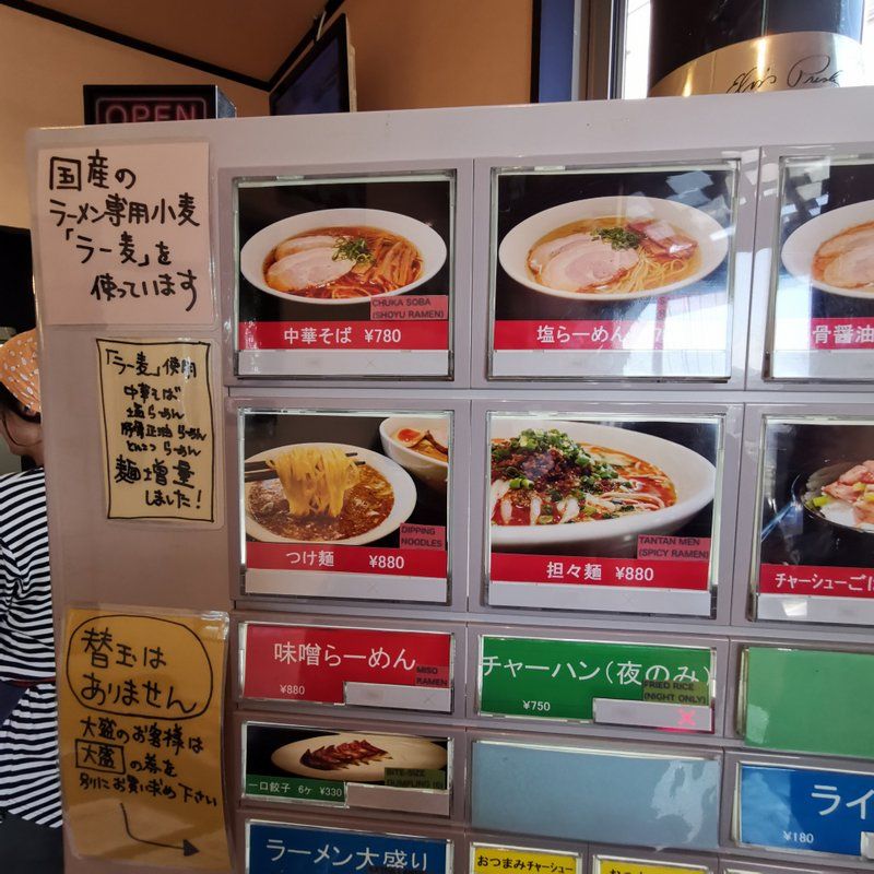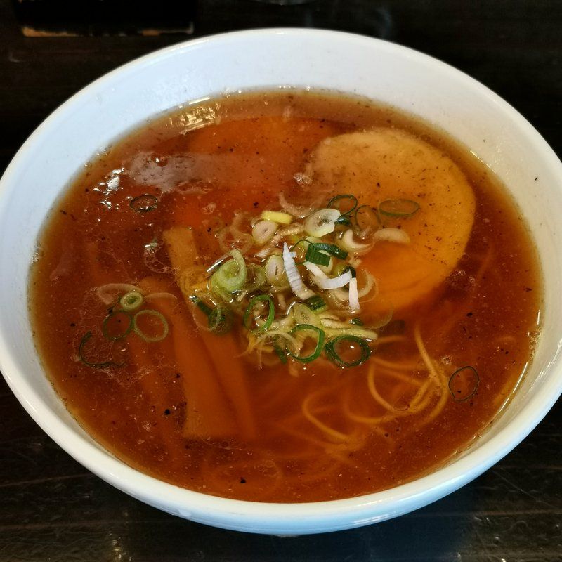 お一人様なんで、カウンターにポッカリ空いた1席にすぐに案内された。ラッキー♪ 食券を買うスタイル。オススメを聞いたら、中華そば780円やったんで、それを押してみた。出てきたラーメンが実に良くできてる。丁寧に作ってるなあ。ナイスな醤油ラーメン♪