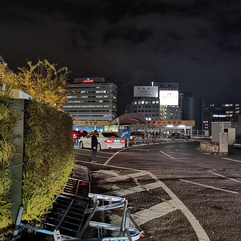 新大阪駅に到着して、タクシー乗り場を見てみると、いつもタクシーがメッチャようけ止まってるタコツボがカラッポ!! 初めて見る光景やった。18時半ってこんな事になってるんやね。まあ今日は金曜日やからかもしれん。