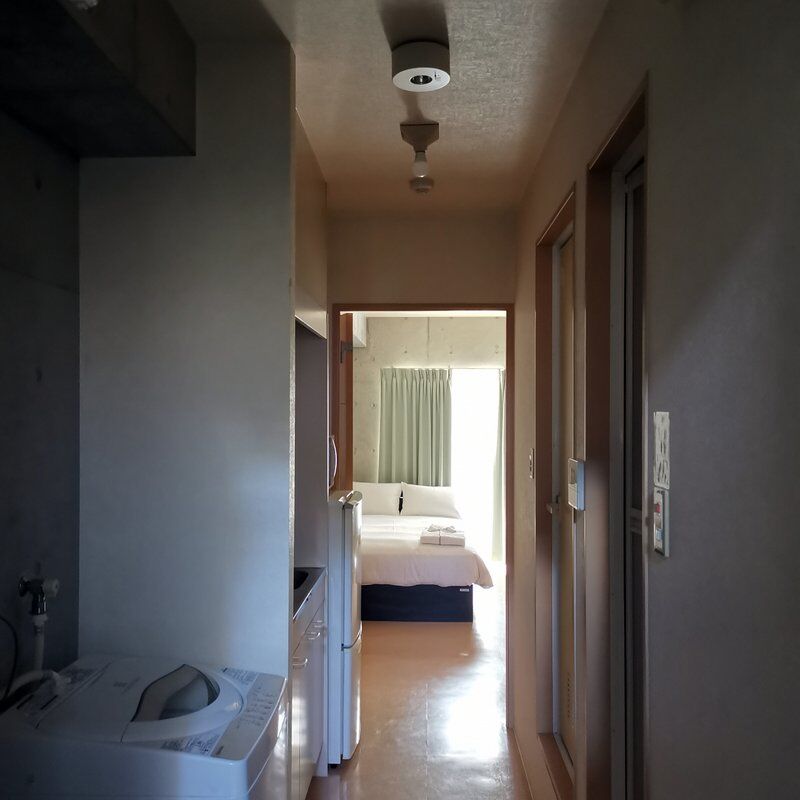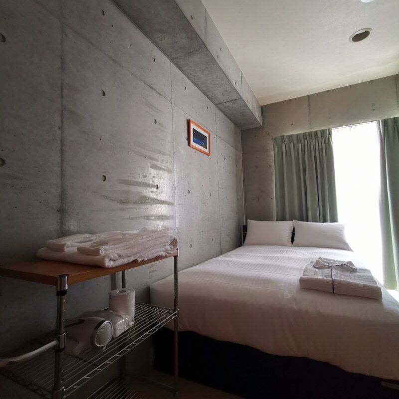 チェックインは15時からやった。到着したのは14時やってんけど、部屋に入らせてくれた。部屋はワンルームマンションみたいになってた。コンクリート打ちっ放しの壁。洗濯機とレンジ、IHもある。バス・トイレはセパレート。ベッドはセミダブル。