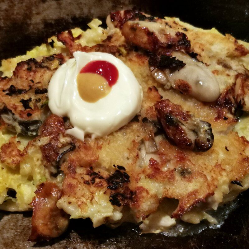 ここは6人掛けのテーブルがようけあるんで、大人数で来ても大丈夫。家族で来てる人も多い。ロール、焼そば、お好み焼きがある。ロールは豚平焼きみたいなカンジ。色々注文してんけど、どれもメッチャうまい。カリカリに焼いた豚肉がのってる豚玉と大量の牡蠣が入ってるカキオコは特にタマラン♪ 値段もリーズナブルで、ゆっくりできるんで、家族も喜ぶこと間違いなし。