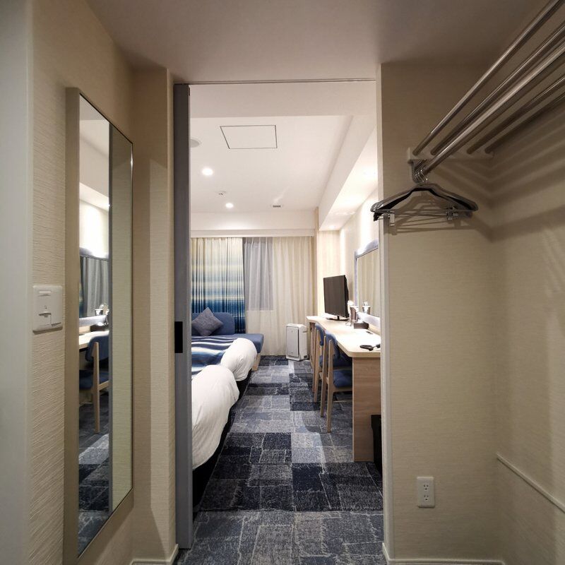 那覇での宿泊はホテルトリフィート那覇旭橋っていう2019年10月にオープンしたばかりのホテルを予約してみた。この前、食堂行った時に見つけてんなあ。良さげなホテルやなあ・・・と思って、帰りはここで泊まろうと思っててん。トリバゴで色んなサイトを比較してみて、アゴダが一番安かった。ツインの部屋が7,268円。1人でも2人でもこの値段。