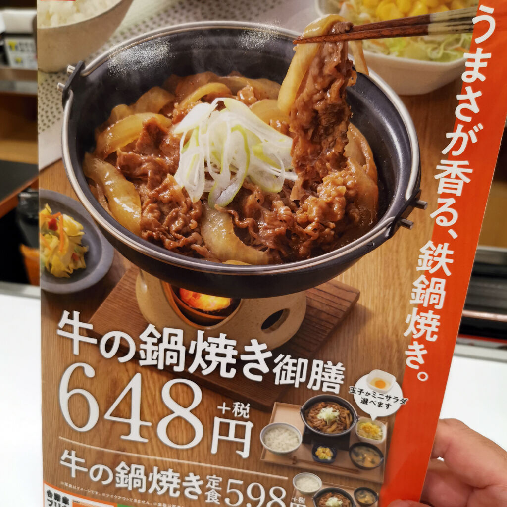 新作の牛の鍋焼き御膳を注文してみた。すき焼き御膳の方が個人的にはいいかなあ。まあでも良く出来てると思う。やっぱり吉野家は安定してるわ。