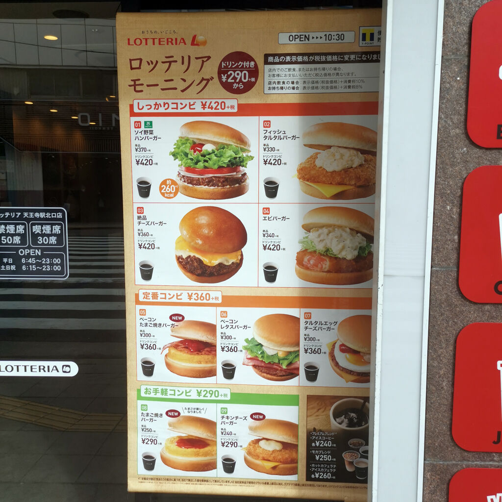 今日は朝からロッテリア天王寺駅北口店に行ってみた。マクドナルドに行こうと思っててんけど、ロッテリアと目が合って思わずこっちにした。ロッテリアってまだあってんなあ。