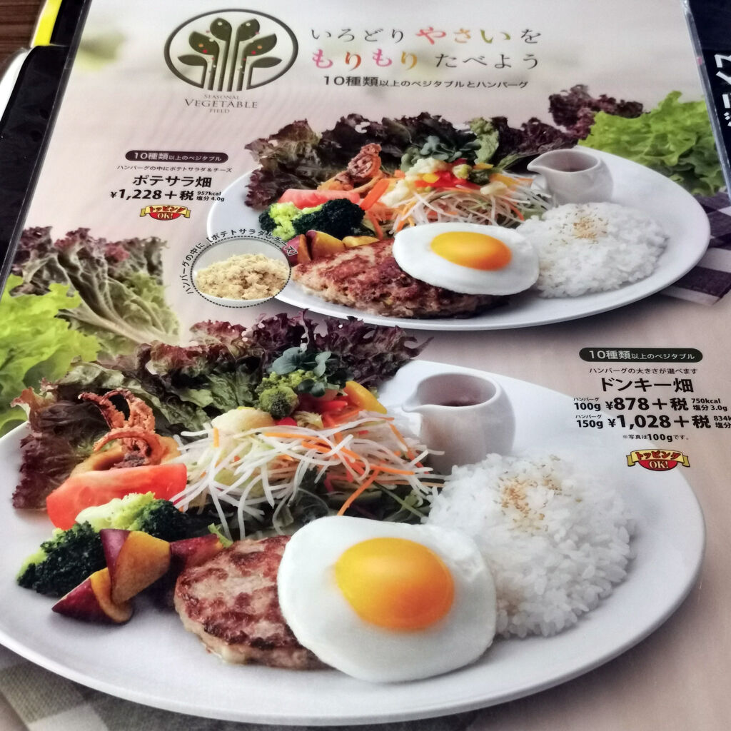 注文したのはポテサラ畑。10種類以上のベジタブルとハンバーグってメニューに書いてある。出てきたワンプレートが確かに野菜山盛りやった。エエやんエエやん。野菜不足が解消できるナイスなメニューやね。現代人は運動不足、野菜不足になりがちやねんなあ。しかし大手のファミレスは凄い。色々考えて新メニューを出してくる。