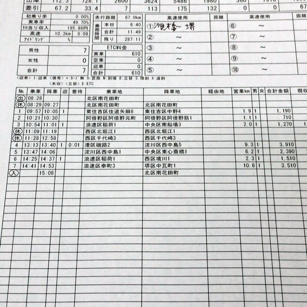 土曜日の営業。今日も昨日に引き続き、ワンコイン南花田に来てくれはった40代新人タクシードライバーのSさんに昼勤側乗教習をさせてもらった。今日は昼勤でメインになるスマホ配車のDiDi攻略方法。