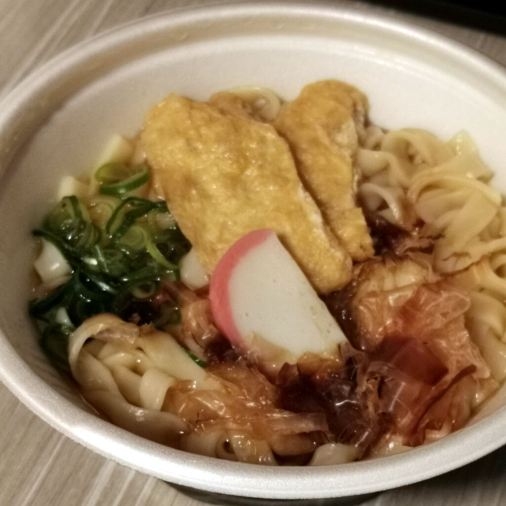 付け待ちしてるタクシーの車列もあった。タクシーっていう仕事は日本全国どこでも出来そうやね。道を覚えるまでがちょっと大変やけど(笑)。ダイワロイネットホテル1階にファミマがあったんで寄ってみた。地域限定のきしめんがある。温めてもらって部屋で食べた。なかなかに良く出来てる。