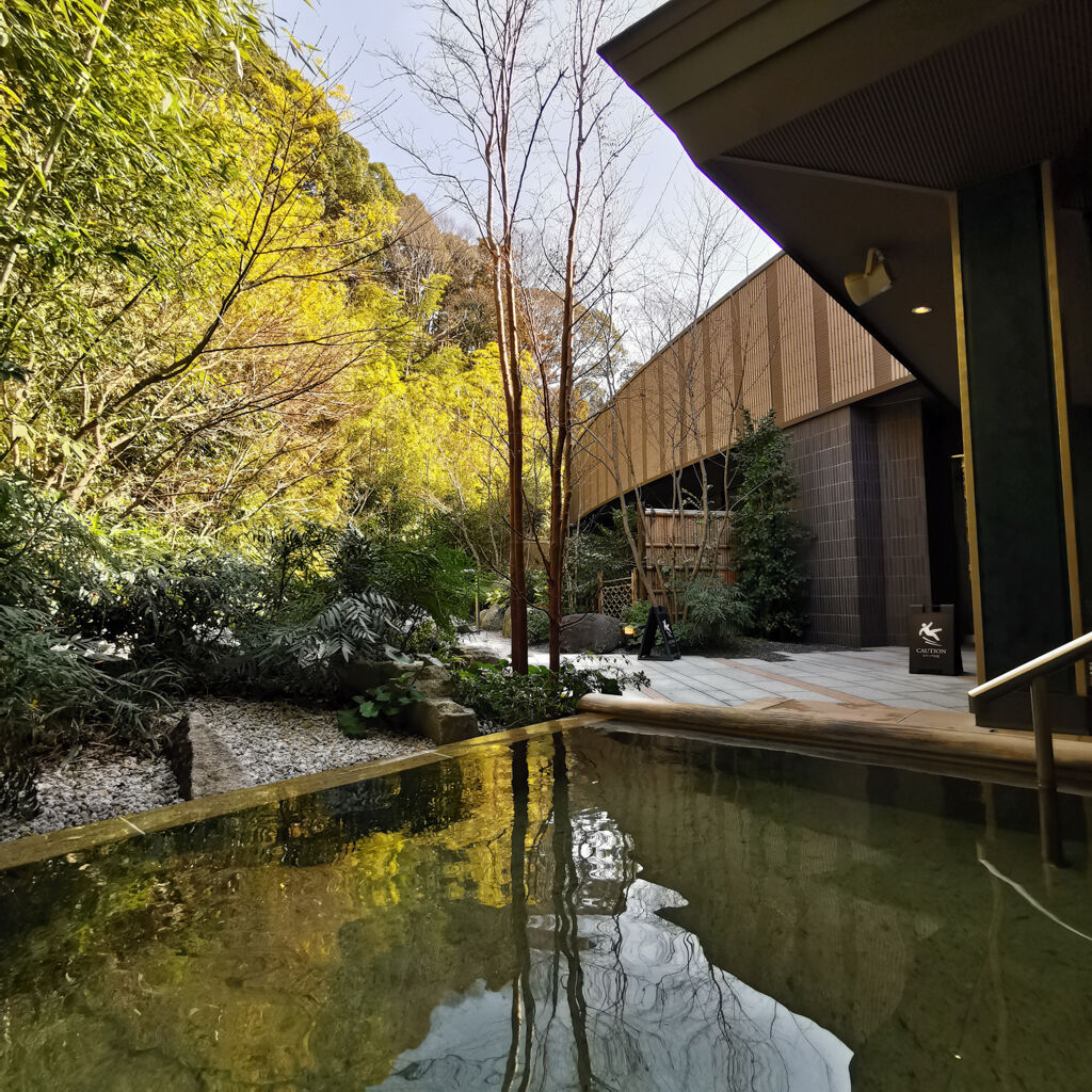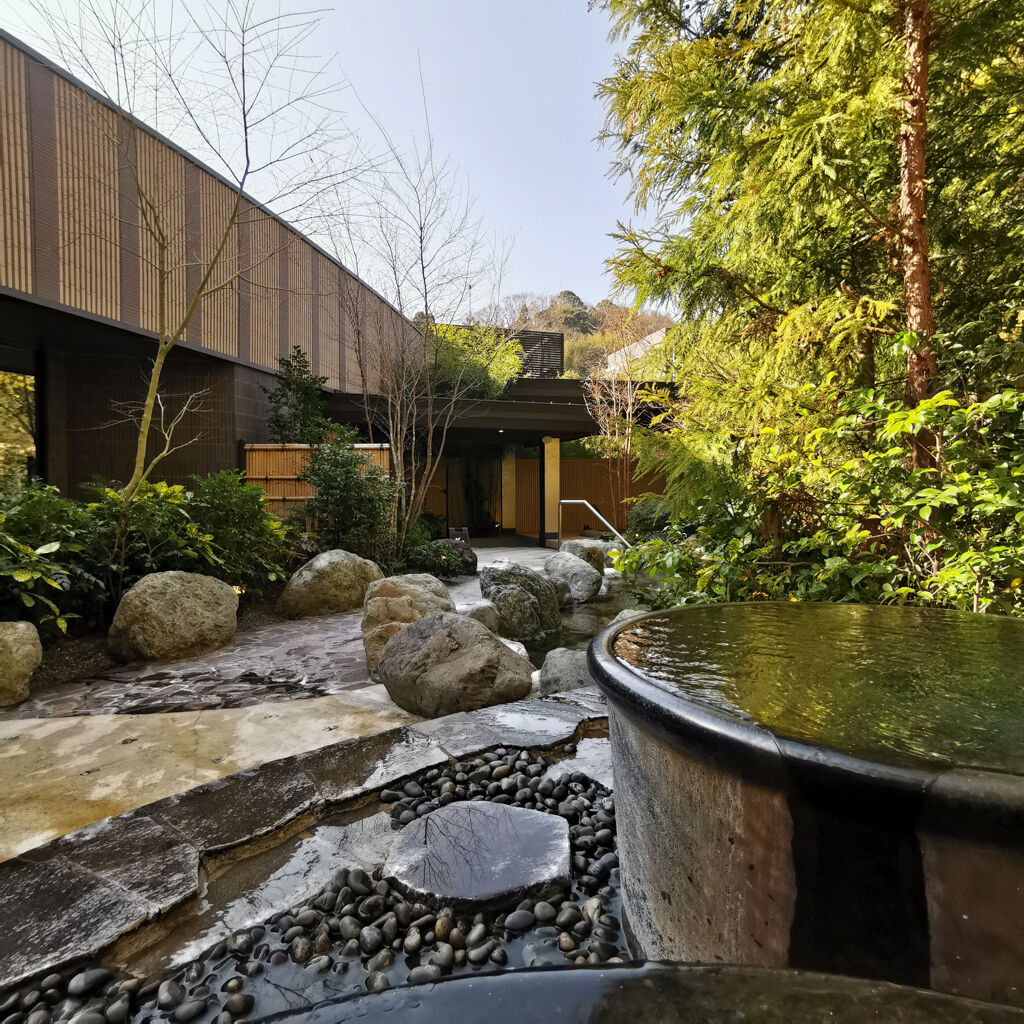 エクシブ湯河原離宮のチェックアウト時間は11時。朝食食べて、まだちょっと時間あったんで、スパ至泉の湯に行ってみた。天気がいいとレイアウトが良く分かる。昨日は暗くて良く分からへんかってんなあ。立派な内風呂と露天風呂やった。