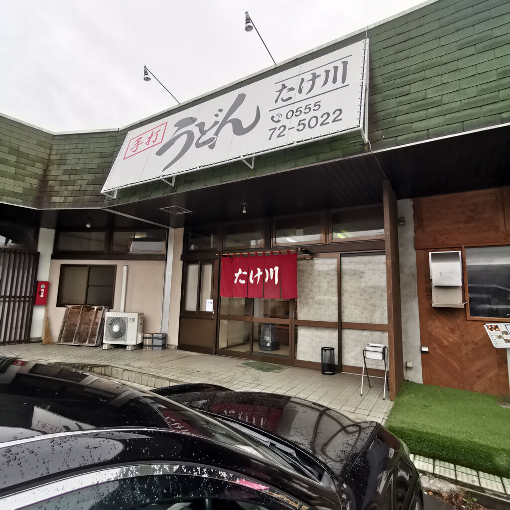 せっかくの山梨県。初めての山梨県。もう1軒ランチに行く事にした。知らない土地に来た時に食べログが実に便利やね。2軒目は手打ちうどん たけ川。138件3.60の名店。無料の駐車場もあった。