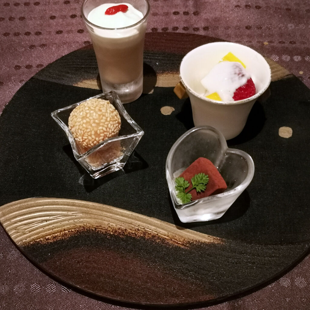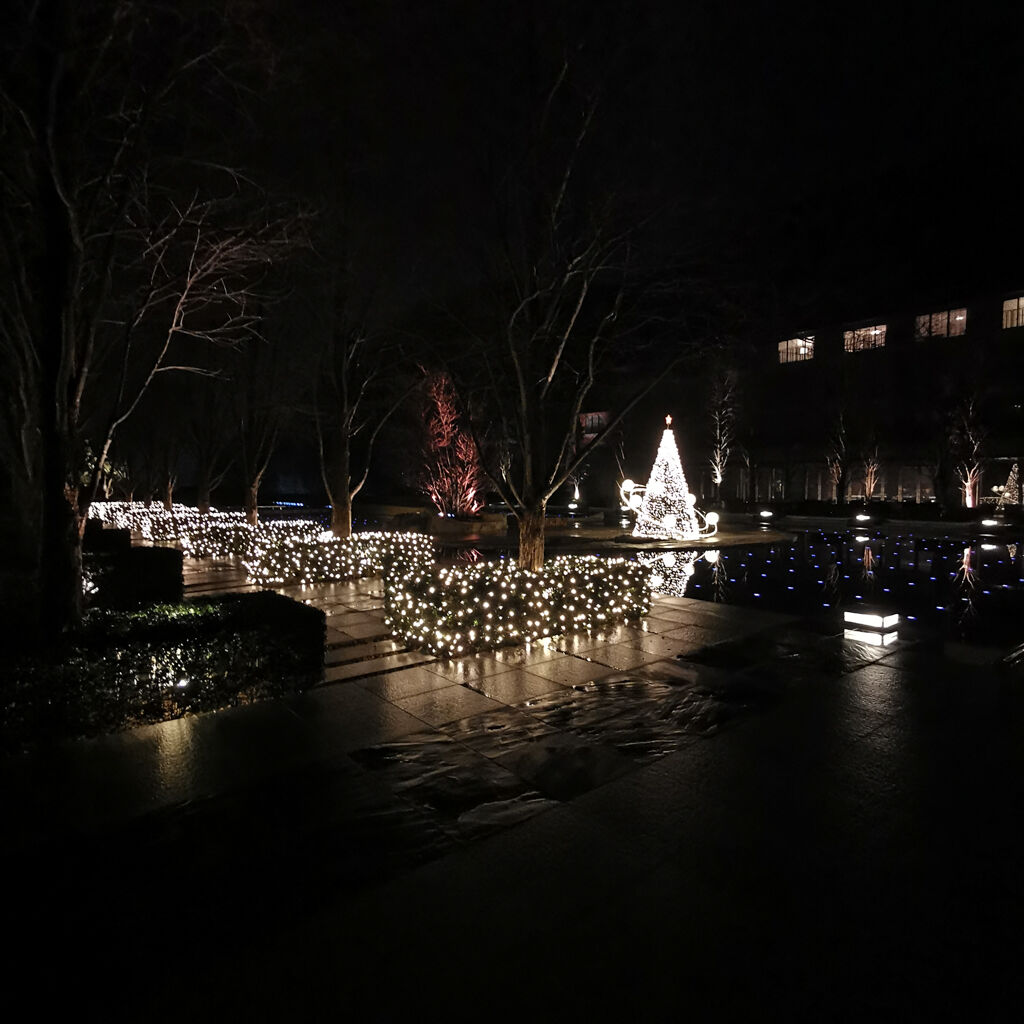 素晴らしい設備。メチャメチャ高級感がある。紹興酒を熱燗で頼んだ。料理はスタンダードコースの鳳凰。1人10,500円。このナイスなレストランで、この値段設定は実にリーズナブルやと思う。味も実に良かった。チャーハンも追加してみた。あまりに腹パンパンになったんで、部屋に戻る前に中庭を散歩してみた。ライトアップされてて綺麗やね。