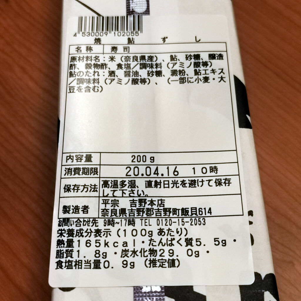 吉野川沿いにあるお店。朝8時半から営業してて、昼は店内で食べる事も出来る。食べログ79件3.42の人気店。おみやげで買って帰る人も多いみたい。焼鮎寿司と鯖寿司、両方とも実に良く出来てた。柿の葉寿司もお店によって味が違うねんなあ。
