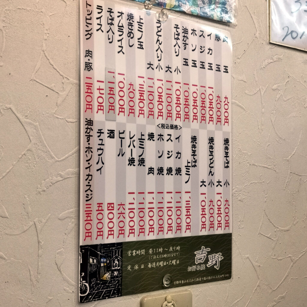 京都の夜。何食べようかなあ・・・と思いつつ、食べログで京都お好み焼きランキングナンバーワンのお店が七条にあるのを見つけた。お好み焼き吉野。162件3.70の人気店。ロケーションが凄い。路地の奥にある。手前の赤ちょうちんを見落とすとたどり着けへんと思う。