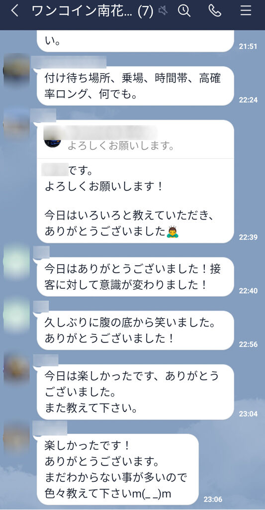 夜勤初月の3人も全員売上60万を超えてた。1日10時間前後の勤務時間で・・・って伝えておいてんけど、それも守ってくれてる。24日出勤1日10時間前後の勤務時間で月給手取り40万。これがまず目安やね。まあでも先は長いんで、無理のないように楽しく勤務してほしい。