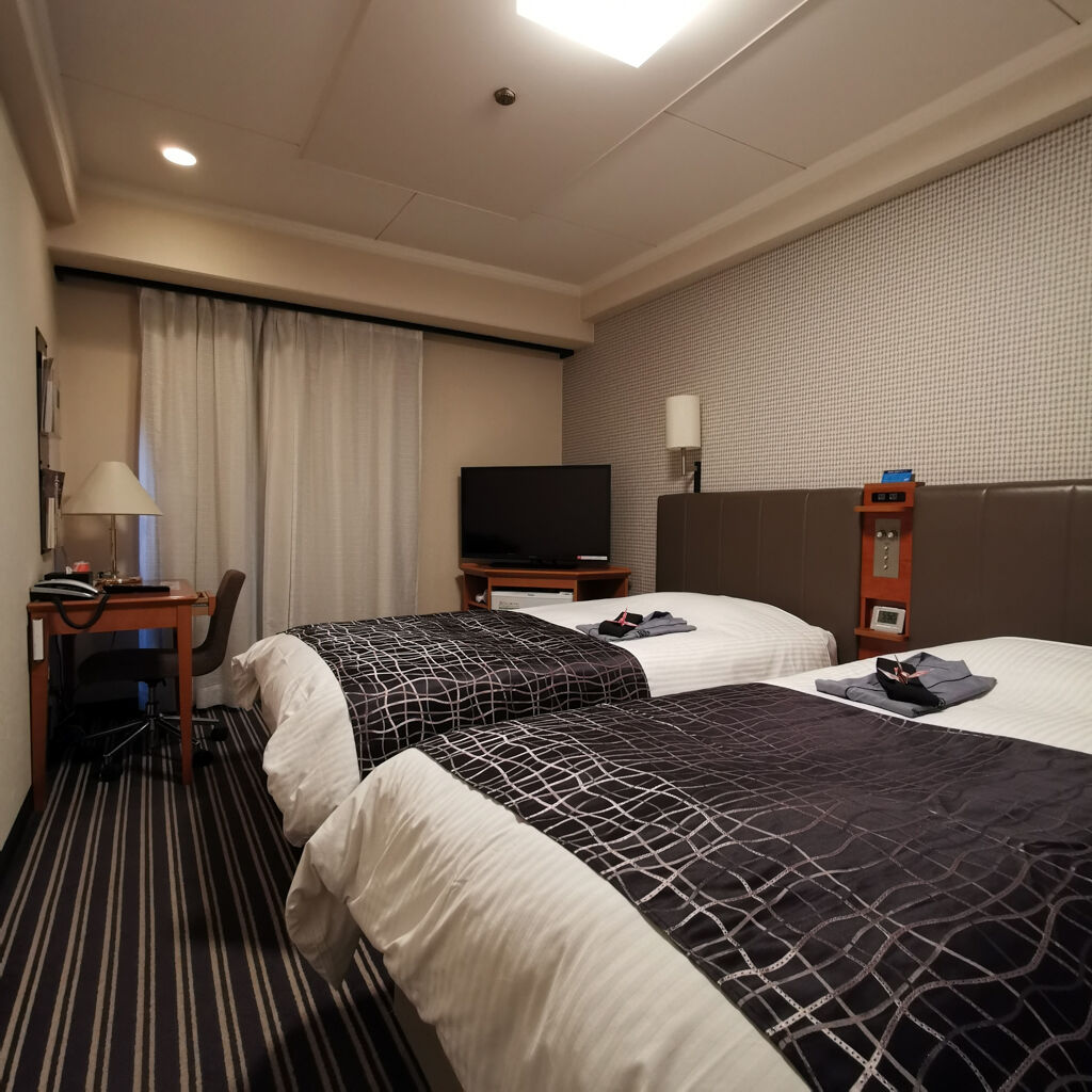 今日の宿泊はアパホテル京都祇園EXCELLENT。一休.comの24時間タイムセールで2名2泊ツインルームが全込み12,000円がポイント即時利用で10,560円。2泊で10,560円。信じられへん。新型コロナウイルスの影響で超激安価格になってる。