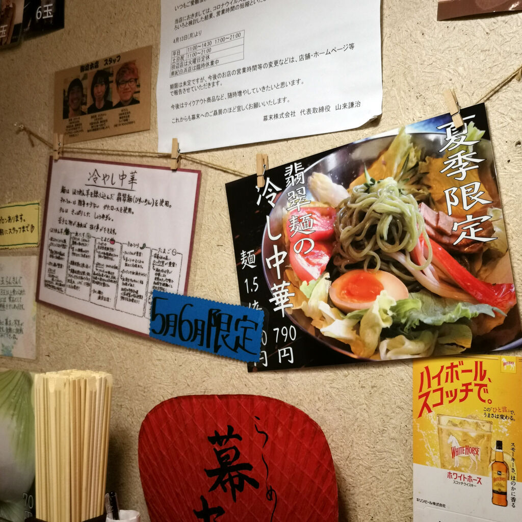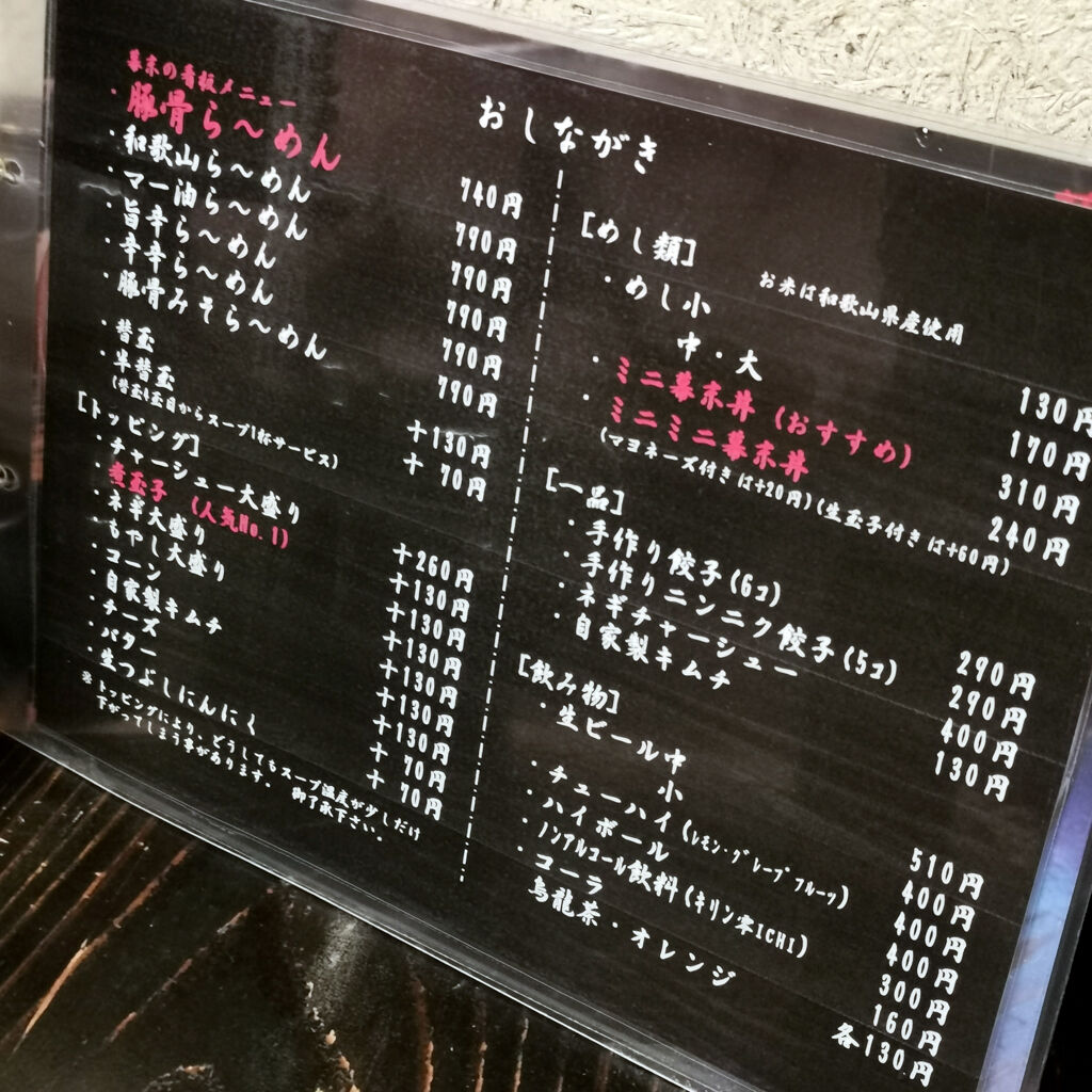 和歌山県御坊市食べ歩き外食グルメ。らーめん幕末で2回目のランチ。看板メニューの豚骨ラーメン&夏季限定の翡翠麺冷やし中華&ミニ幕末丼で腹パンパン♪ 2020年05月30日 15:00 和歌山市内に帰る前に、せっかくの御坊市なんで、この辺で何か食べて行く事にした。食べログで見つけたのがこのお店。らーめん幕末。28件3.25。無料駐車場があった。注文したのがこのお店の看板メニュー豚骨ラーメン、夏季限定の翡翠麺の冷やし中華、ミニ幕末丼やね。豚骨ラーメン、なかなかに良く出来てる。緑色の冷やし中華もいい。マヨネーズがあればもっと良かった。幕末丼も食べて腹パンパンやね~♪ 幕末 (ラーメン / 学門駅、御坊駅、紀伊御坊駅) 昼総合点★★★☆☆ 3.5 ↓↓↓応援クリックよろしくお願いします 人気ブログランキング 「外食グルメ食べ歩き」カテゴリの最新記事 「和歌山」カテゴリの最新記事 タグ :#らーめん幕末#和歌山グルメ#御坊市食べ歩き#翡翠麺#幕末丼#豚骨ラーメン#看板メニュー#タクシードライバーの休日#口コミ情報#ランチ < 前の記事次の記事 > コメント コメントフォーム 名前 コメント 評価する リセット リセット 顔 星 投稿する 情報を記憶