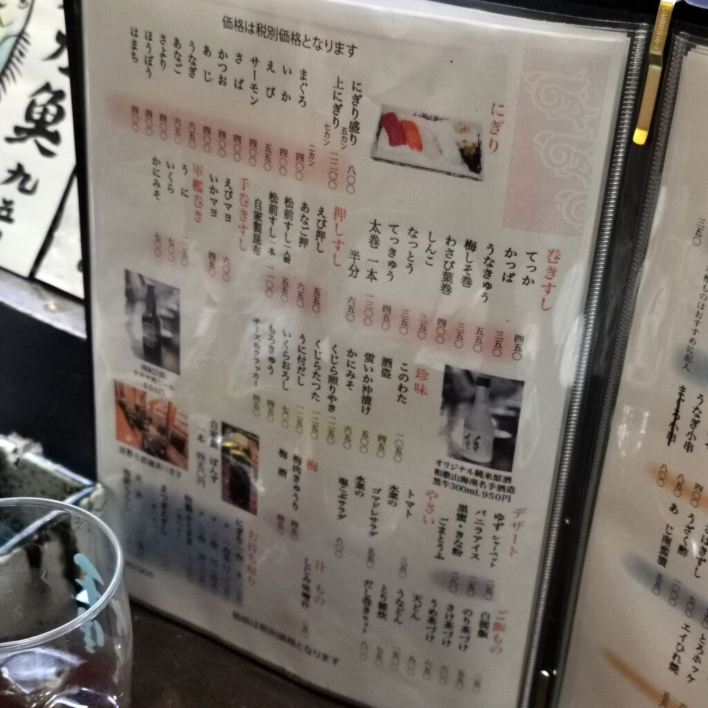 創業昭和30年。凄いわ。オレが生まれる前から営業してるんやね。ここのお酒と料理が実に良かった。地のお酒に地の魚、地の野菜・・・!! 値段も確かにリーズナブル。寿司もあった。鯖寿司がイヤにうまかったんで、テイクアウトでも頼んだ。和歌山のナイスな老舗居酒屋さん♪