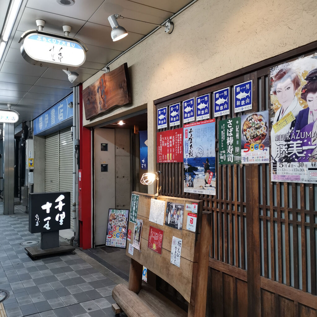 和歌山最後の夜。せっかくなんで、この辺の食材を使った居酒屋さんに行ってみたいなあ・・・と思って、食べログで探してみた。20件3.39のお店を発見。家族経営の老舗居酒屋。リーズナブルでこの辺で採れた魚が食べれるみたい。ここにしよう。千里十里(チリトリ)。