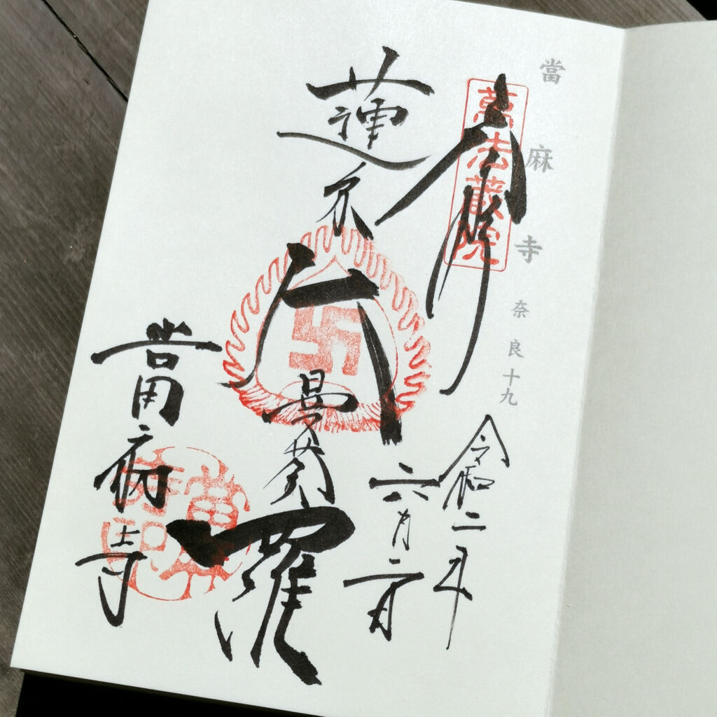 当麻寺って初めて来たけど、結構広いねんなあ。無料駐車場もあった。それにしても誰も人がおらへん。天気メッチャいいのに、不思議なカンジ。御朱印は無事書いてもらう事が出来た。ちょっと歩いたら汗かくなあ。
