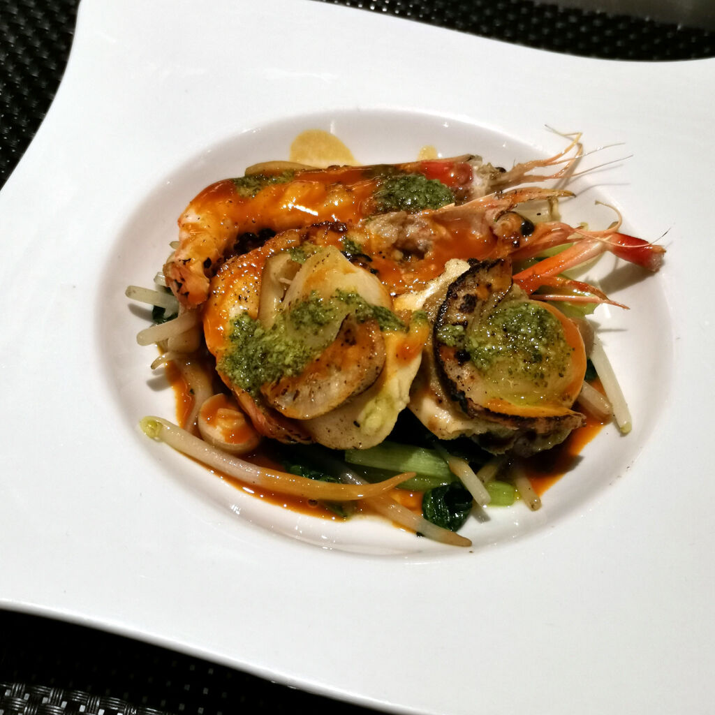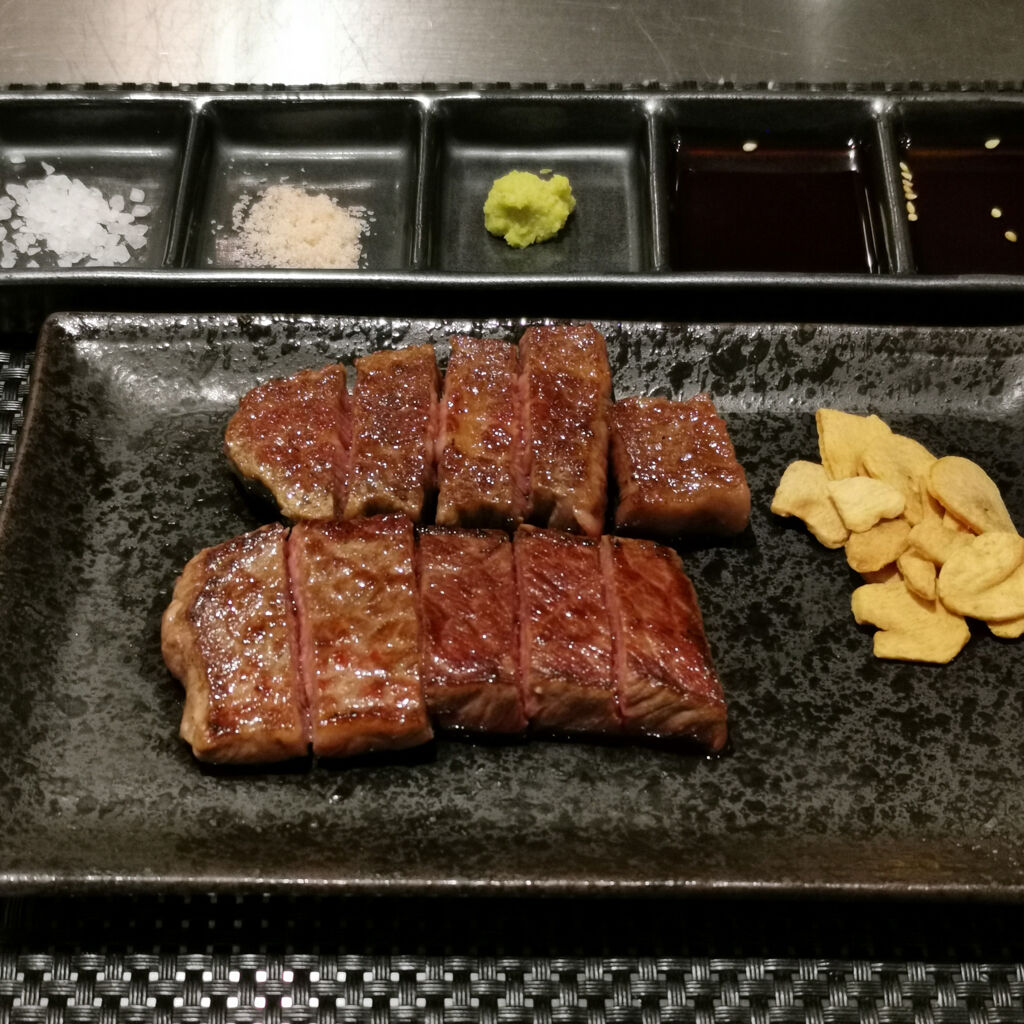予約しておいたコースは【一休限定】フォアグラ&手長海老の鉄板焼、尾崎牛の食べ比べなどフルコース全9品+1ドリンクで1人16,060円が31%オフで11,000円。あんまり忙しいと大変やね。シェフは奮闘しつつ、全てのオーダーをこなしてはった。ステーキがうまかったなあ。赤ワインにピッタリ♪