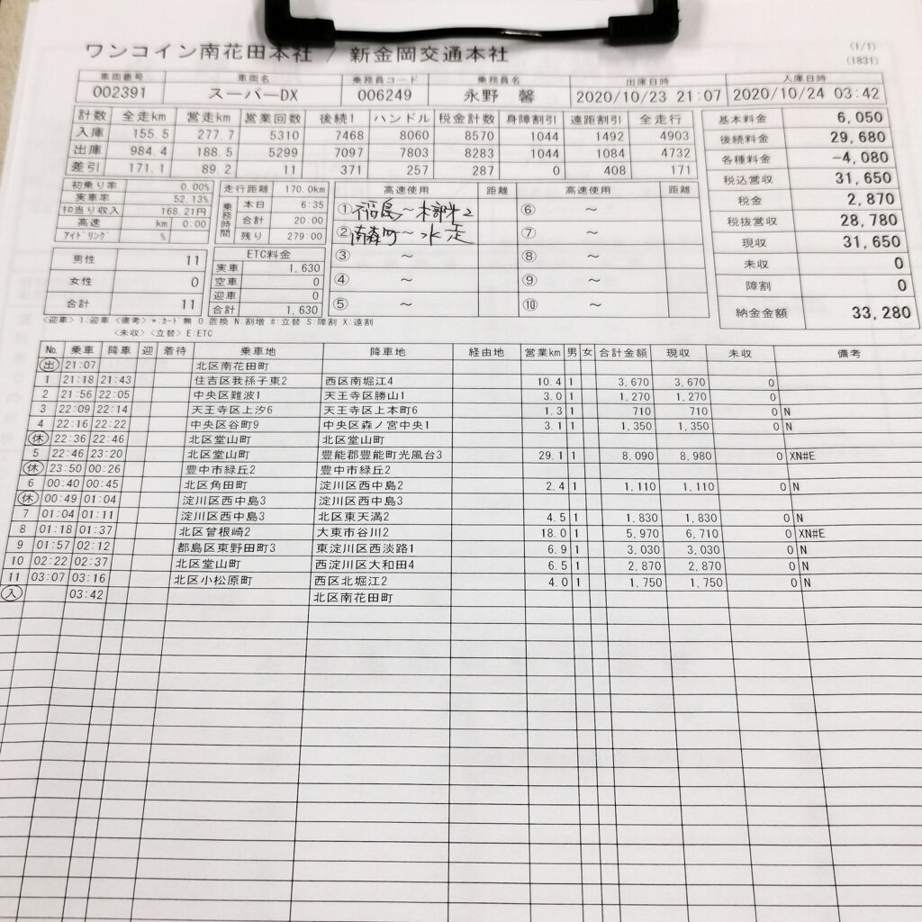 予想通りその後もつながって、ポンポンポンと売上上がった。ひと休みがてら、太融寺の付け待ち場所に並んでみたら、550円の行灯見て選んでもらえて、このお客さんが光風台。え・・・!? 桃山台ちゃうん?? 光風台ってどこやねん・・・と思ったらメッチャ遠い・・・(笑)。8,090円。