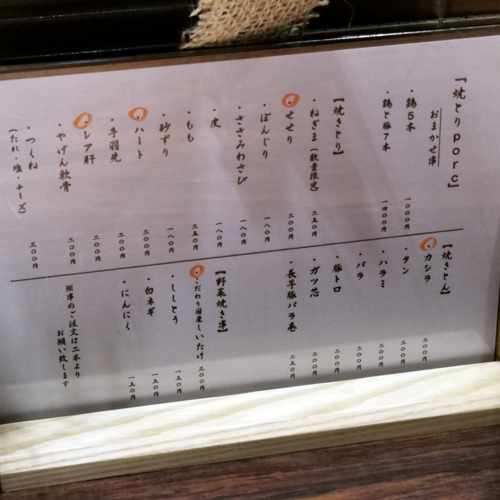 大阪東心斎橋食べ歩き外食グルメ。通りがかりで焼とりporc (ヤキトリポー)に入ってみた。ここが大人の焼鳥で良かってんなあ~♪ 2020年10月19日 18:00 今日は東心斎橋で仕事仲間と会食予定やった。ちょっと早く東心斎橋に着いたんで、どこかに入って時間をつぶす事にした。焼とりporc (ヤキトリポー)。雑居ビルの地下にある。たまたま通りがかりで提灯と目があったんで、ここに入ってみた。ここが大人の焼鳥っていうカンジで実に良かってんなあ。ビックリした。こんなトコにこんな焼鳥屋さんがあったんやね。全然知らんかった。豚ホルモンもある。一人焼鳥もOK♪ カウンターでゆっくりさせてもらえた。またぜひ来たい。 焼とりporc (焼き鳥 / 心斎橋駅、長堀橋駅、四ツ橋駅) 夜総合点★★★★☆ 4.1 ↓↓↓応援クリックよろしくお願いします 人気ブログランキング 「ヤキトリ」カテゴリの最新記事 「大阪ミナミ」カテゴリの最新記事 タグ :#焼とりporc#大阪グルメ#東心斎橋食べ歩き#炭火焼鳥#一人焼鳥#大阪外食日記#大阪食べ歩きブログ#レストラン巡り#クチコミ情報#感想レビュー < 前の記事次の記事 > コメント コメントフォーム 名前 コメント 評価する リセット リセット 顔 星 投稿する 情報を記憶