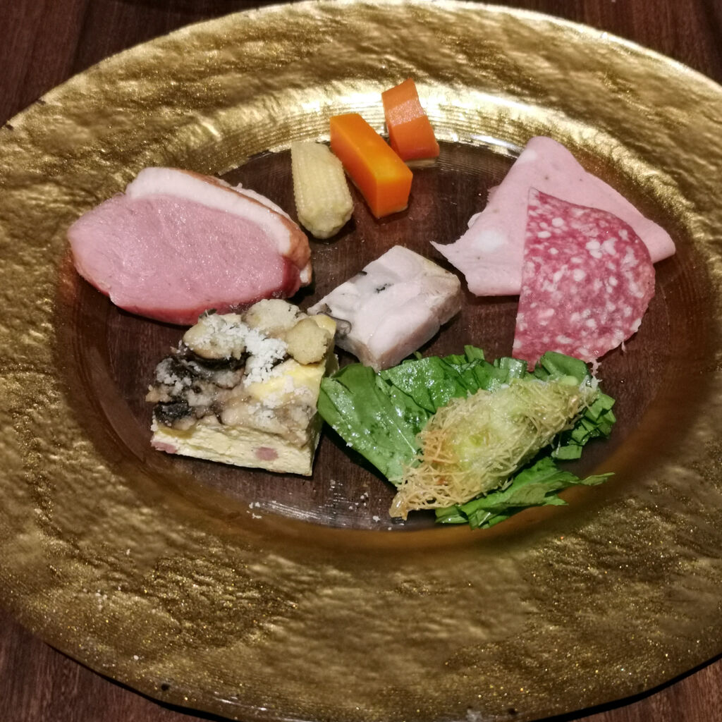 予約したのはフルコースディナー~前菜盛り、パスタ、メイン、デザートなど全5品+ワイン3杯(スパークリングワイン・赤・白)で1人5,500円。ドリンク3杯付けて、この価格設定は激安価格やね。GOTOEATキャンペーンもあるし、大阪府キャンペーンポイントもある。味も接客サービスも実に良かった。また機会があれば来たいと思う。