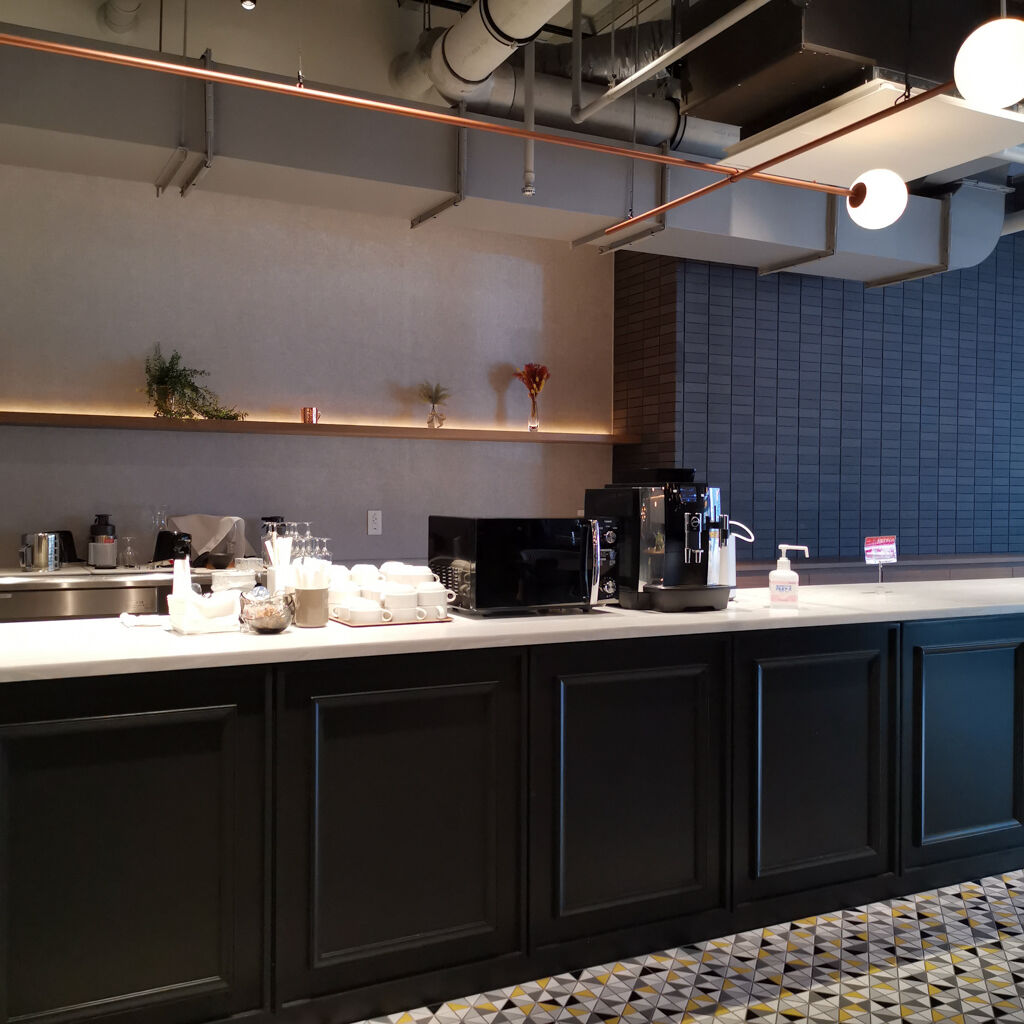 ここはフルサービス型のシティホテルでもなく宿泊特化型のビジネスホテルでもないライフスタイル型の新しいコンセプトのホテル。2019年8月開業。フロントも斬新やった。その隣に宿泊者専用の共有スペースがあって、ここで無料のドリンクサービスがある。無料Wi-Fiも飛んでるんで、仕事もしやすい。