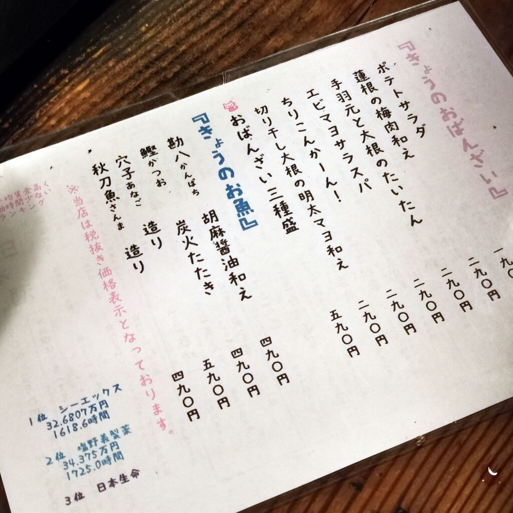 オモテの雰囲気も、店内の雰囲気もいい感じやね。リーズナブルな価格設定で、しかも出てくる料理がちょっと仕事してあって実にいい。ここってだいぶ人気店みたい。せやろなあ。なんかそんな雰囲気がプンプン漂ってた。