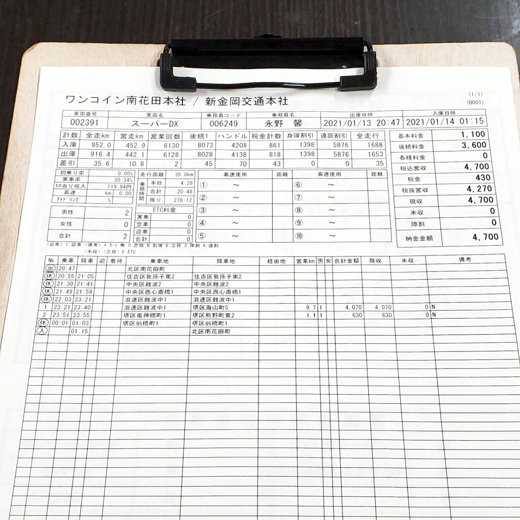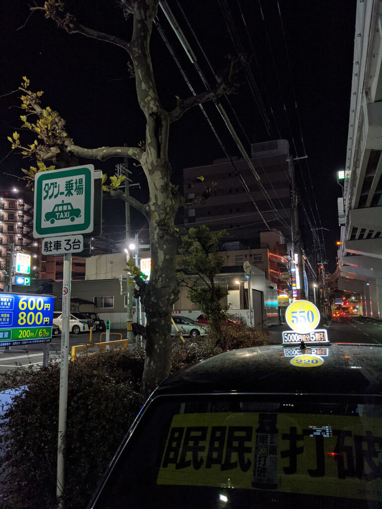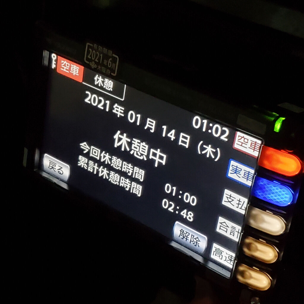 まあそんなカンジで今日の営業は・・・、結論から言うとサッパリあかんかった(笑)。あまりにも空車のタクシーが多くて、アダっちゃんに電話して秘密のポイントを教えてもらってんけど、そこでも1時間半ぐらいハマった。せやけどそこから堺の女性のお客さんが中抜き乗ってきた。550円で良かった。