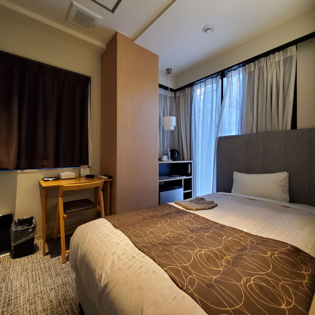 さすがに去年オープンしたばかりなんで、建物はメッチャ綺麗やった。バスルームは昔ながらのユニットタイプやね。大浴場とかは特に無かった。部屋は快適で、ベッドもちょっと広めやね。繁華街から近いのもいいと思う。