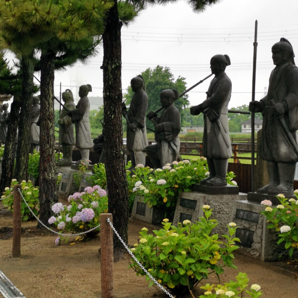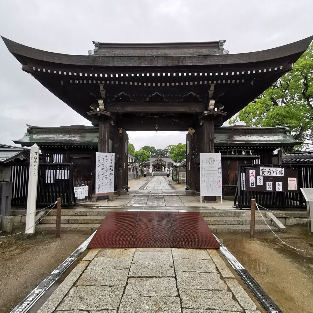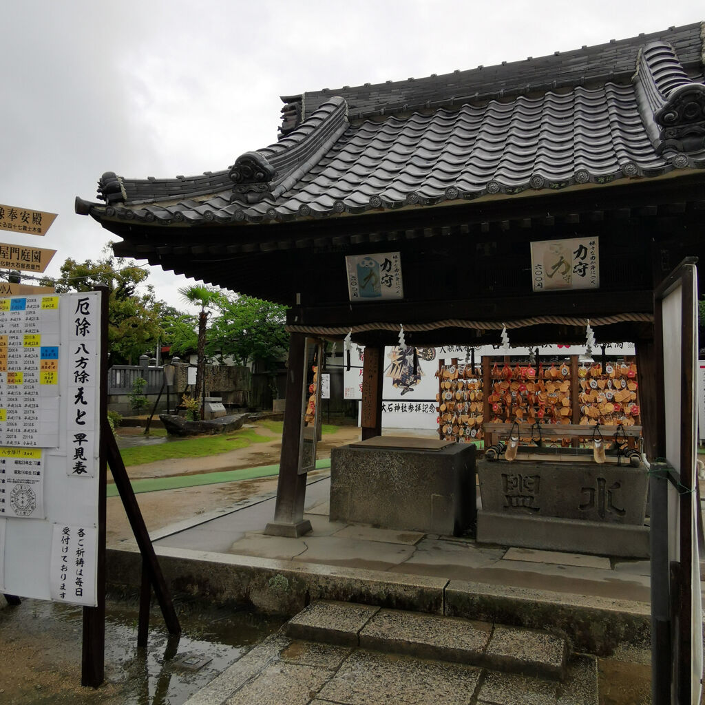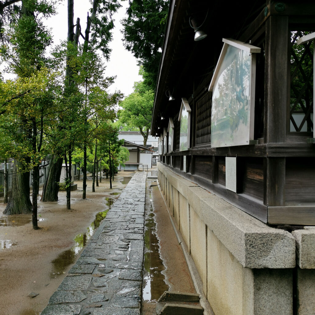 雨やった。参拝客はゼロ。ここは忠臣蔵で有名な赤穂浪士を祀ってる神社やった。入り口のトコにズラッと石像が並んでるのは凄い雰囲気。今にも動きそうやね。大石内蔵助もちゃんとあった。御朱印も書いてもらえた。大願成就って書いてある。