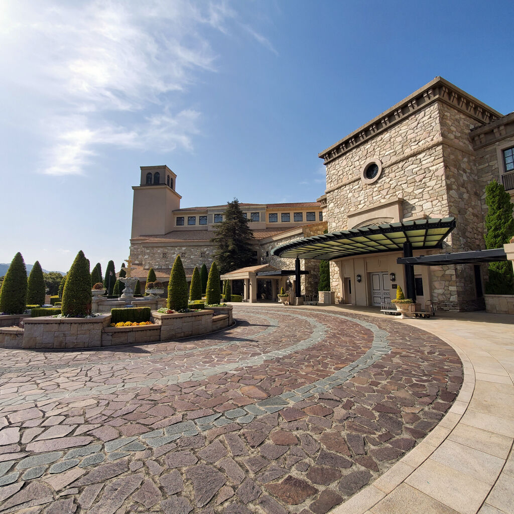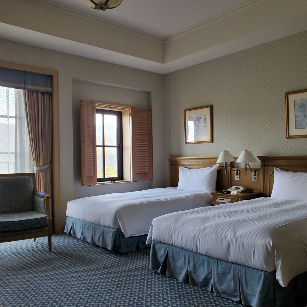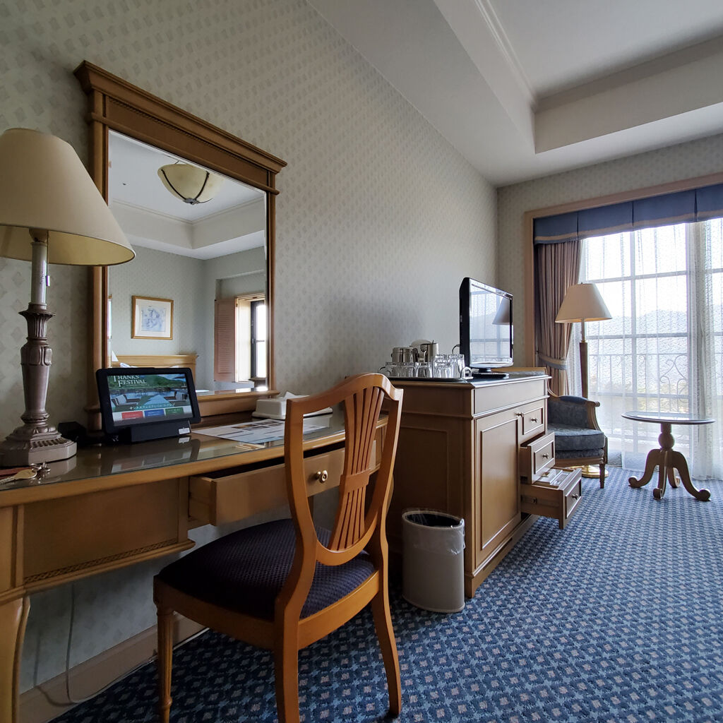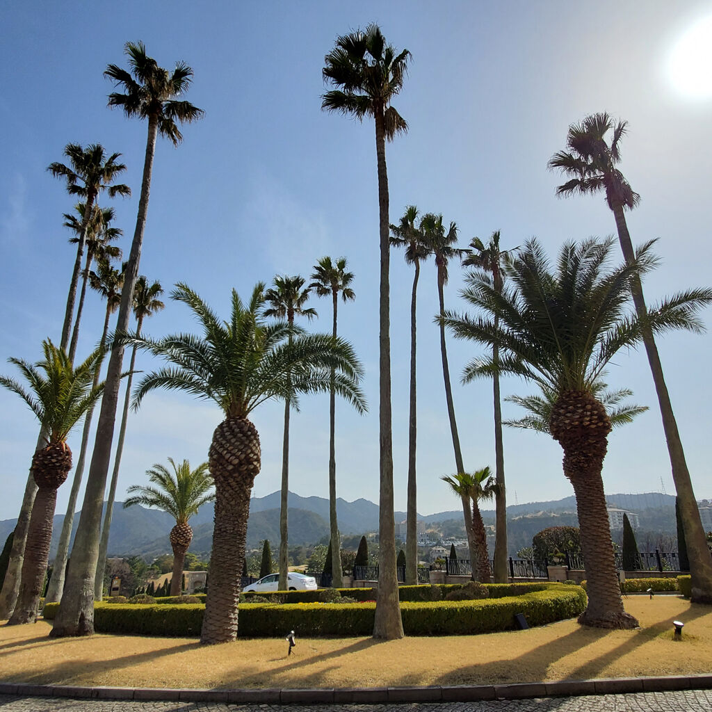 今まで色んなエクシブに泊まらせてもらったけど、これだけ駐車場が空いてるのは初めてやわ。天気が良くて温かいから長袖のTシャツ1枚で全然大丈夫。ここのスパが実にいいんで、部屋でひと休みして、サクッと行ってみよう~♪