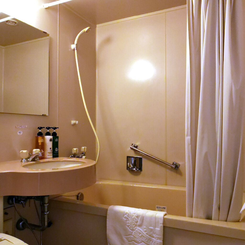 部屋に入ってみると、なぜかツインの部屋やった。シングルルームのハズやねんけどなあ。まあエエわ。ラッキーやね。部屋はリニューアルされててんけど、バスルームは前のままやった。まあいずれにしてもこの部屋が1泊2,500円はナイスやわ。文句のつけようがない。