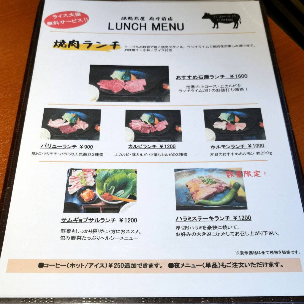 京都丸太町ランチ巡り~3軒目は焼肉石屋 府庁前店。通りがかりで何となく昼から焼肉もいいなあ・・・と思って入ってみた。