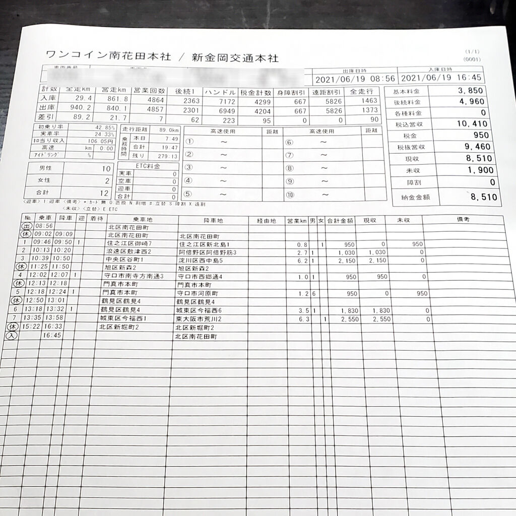 無事、無事故無違反で終える事が出来た。タクシー乗り場の並び方等、新人ならではの質問もあった。そうやんなあ。何も分からへんもんなあ。