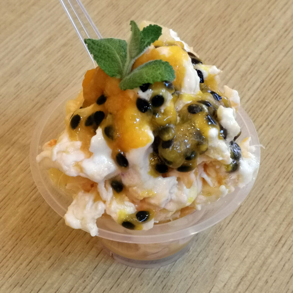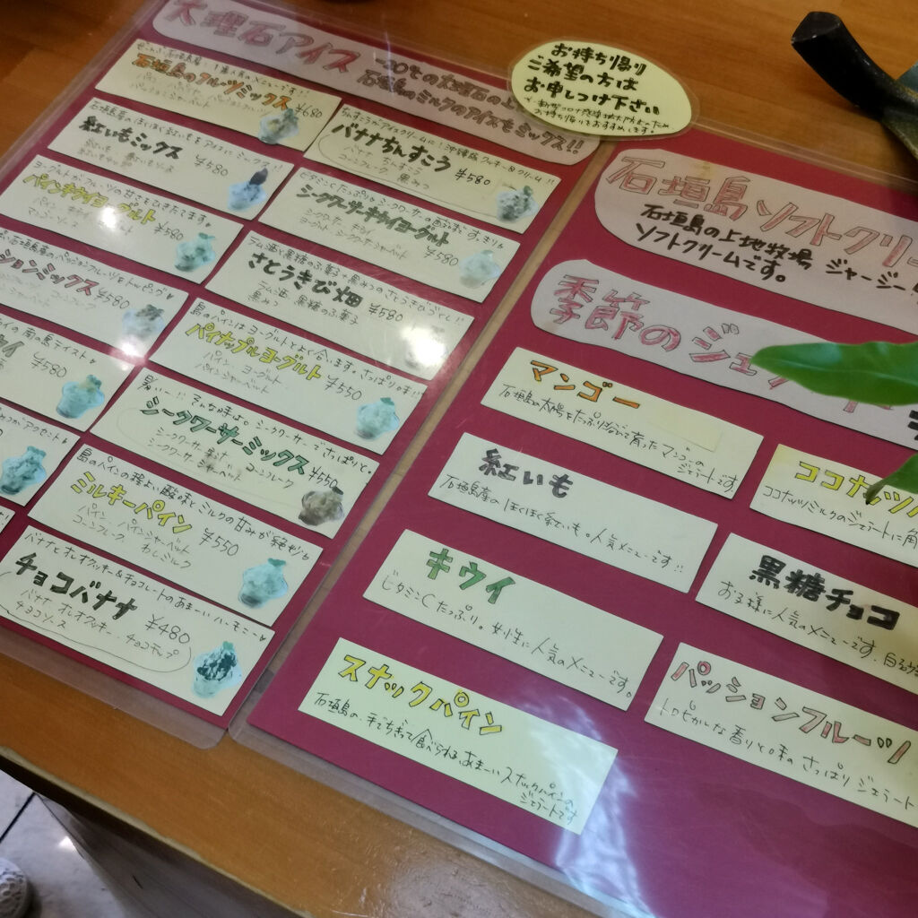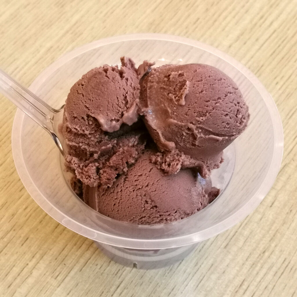 黒糖チョコっていうジェラートと、大理石アイスの石垣島フルーツミックスにしてみた。両方ともなかなかに良く出来てる。大理石アイスって-20度に冷やした大理石の上で混ぜるねんなあ。初めて見た。石垣島やったら暑いんで流行ってそうやね。