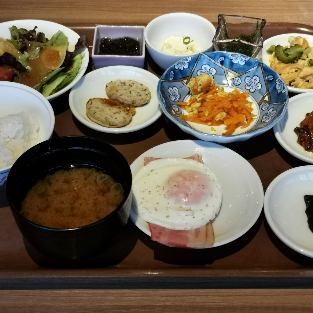 8泊9日沖縄石垣島旅行記。3日目の朝はアートホテル石垣島1階にあるアクアリスでブッフェスタイルの食べ放題バイキング。地元の料理が色々あるのがいい。