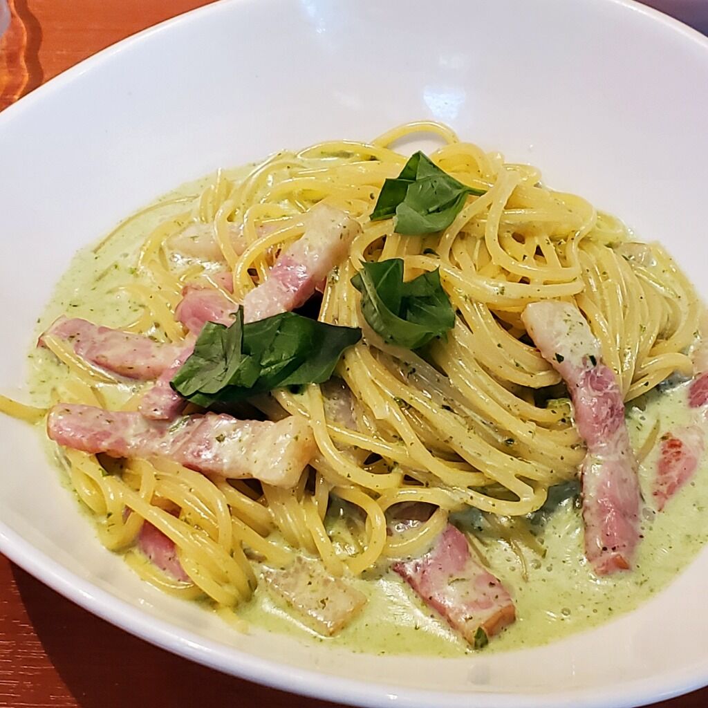 グラスワイン白を注文。それと名物アンチョビポテトサラダ、水茄子のカルパッチョ仕立て、ベーコンとバジルのジェノベーゼをいっといた。あー、白ワインはやっぱりスッとするなあ。水茄子カルパッチョが良かった。ポテサラ凄いボリュームで、パスタはなかなかに良かった。