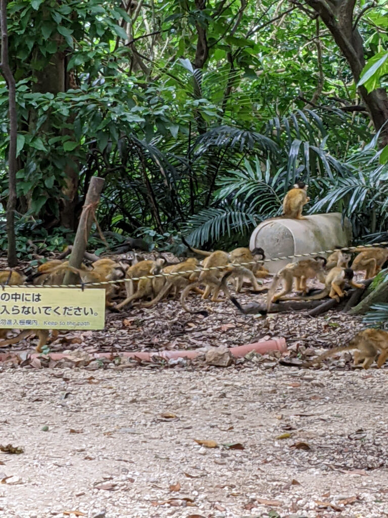 くもってるけど、せっかくの石垣島。どこにも行けへんのはもったいない。観光名所をスマホで調べて、石垣やいま村っていうトコに行ってみた。ここにリスザルっていう人懐っこい小さなサルがいてるみたい。
