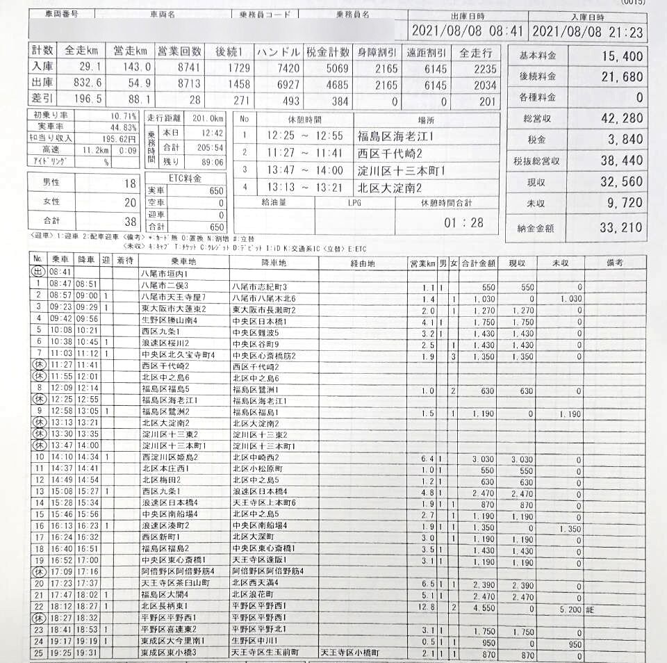 日曜日。祝日で山の日。昨日の土曜日から三連休で今日が真ん中。さあ、緊急事態宣言7日目の大阪タクシー営業の結果は・・・!!