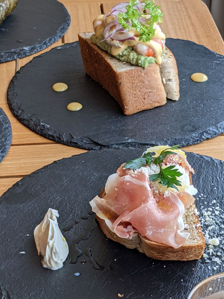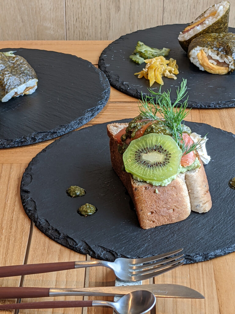 スモーブローセットっていう朝食やった。スモーブローっていうのがデンマーク伝統のオープンサンドイッチみたい。3種類全部いっといた。エビアボガドが最高やったなあ。洒落たカンジやね。ポークたまごおにぎりも部屋にお持ち帰りしてみた。これもボリュームあって良かったなあ。