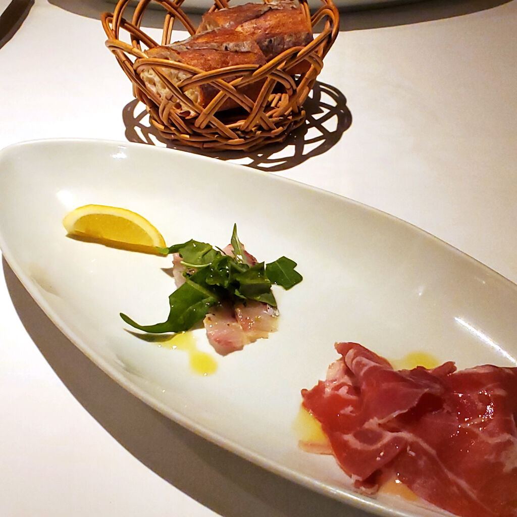 今日はB級グルメ王さまと会食。一休レストランで東心斎橋のイタリアン アルバロンガを予約しておいた。ここに来るのも久しぶりやね。予約プランは『前菜2種、パスタ、メイン料理、デザートなど全5品+選べる1ドリンク』1人5,000円。